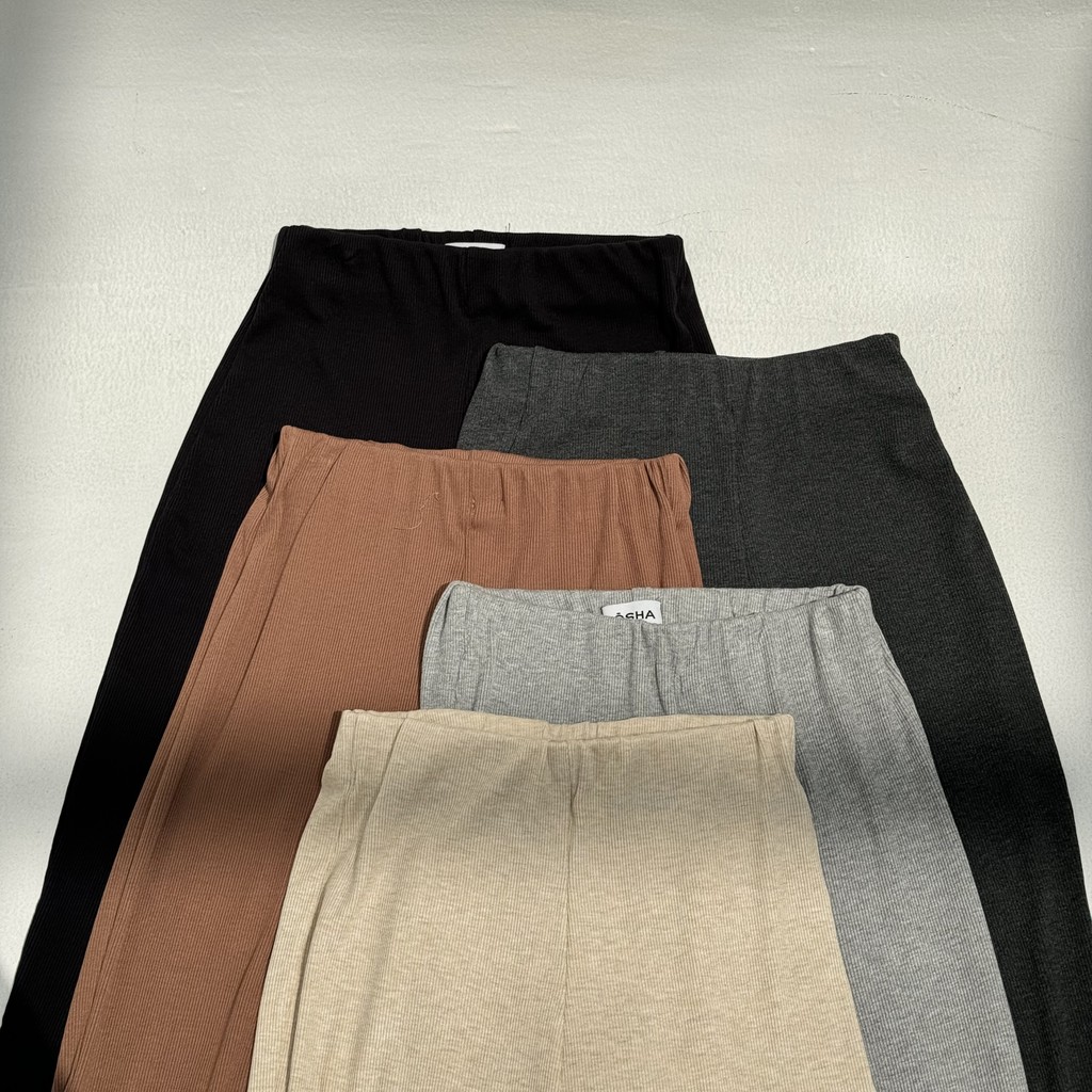 CORA PANTS - Celana Panjang Knit Wanita Long Cullote Pants Highwaist Loose Flare Cutbray Pants Basic Rib Knit Korean Long Trousers Murah Posha