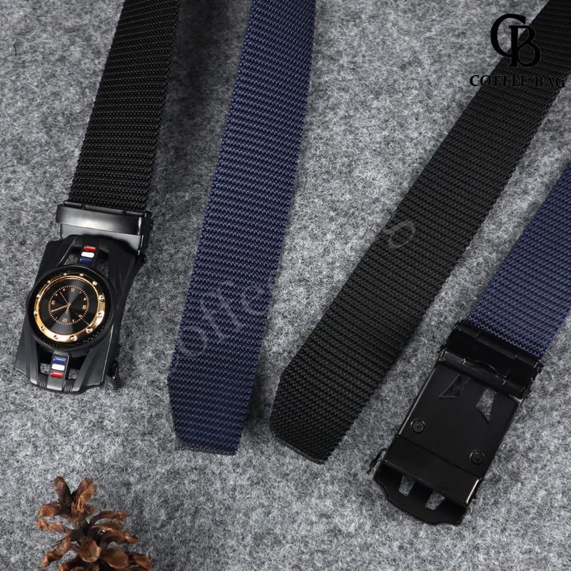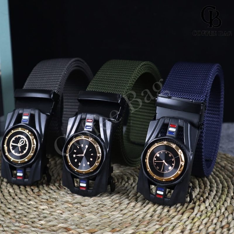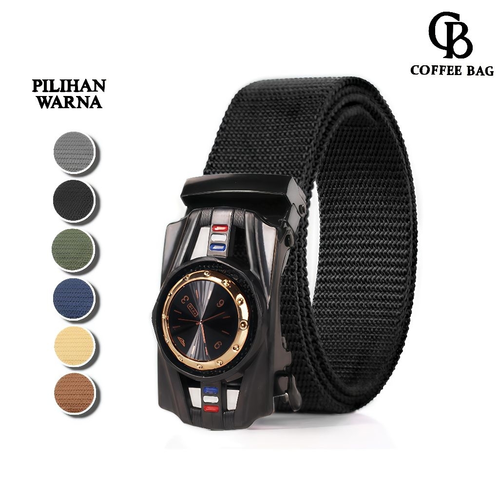 IKAT PINGGANG [CB] Ikat Pinggang Canvas Nylon Sabuk Pria Kepala Model Spiner Jam Bisa Muter-D-3709