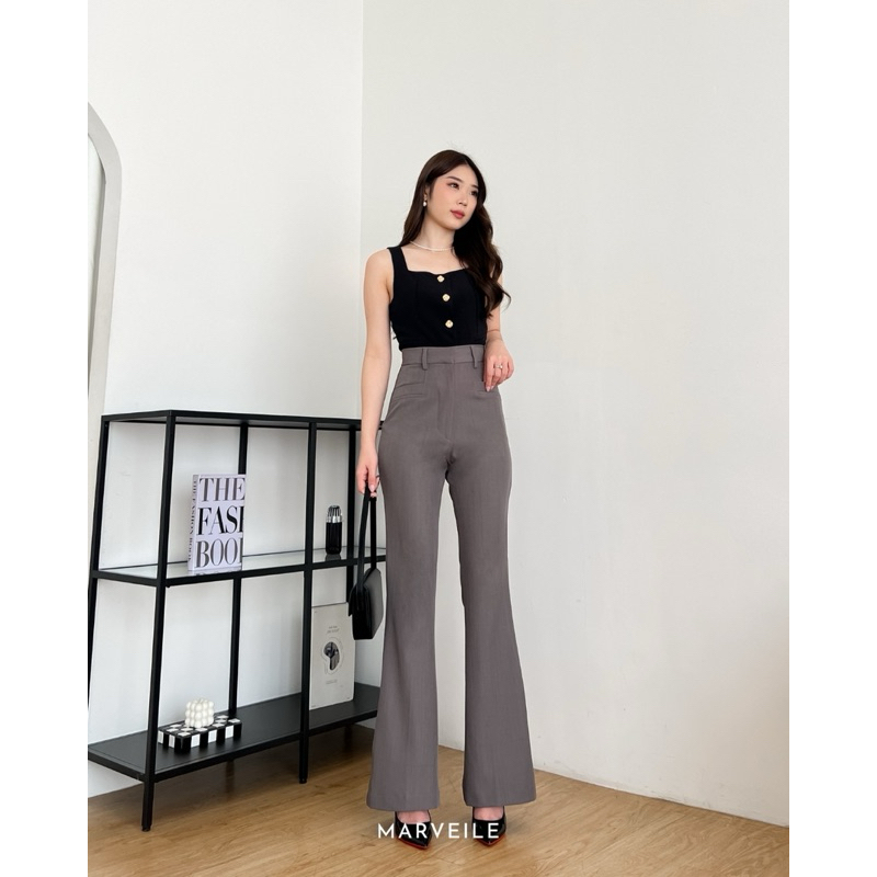 [ Marveile ] Kylie Cutbray Highwaist Pants / Cutbray Flare Pants Wanita