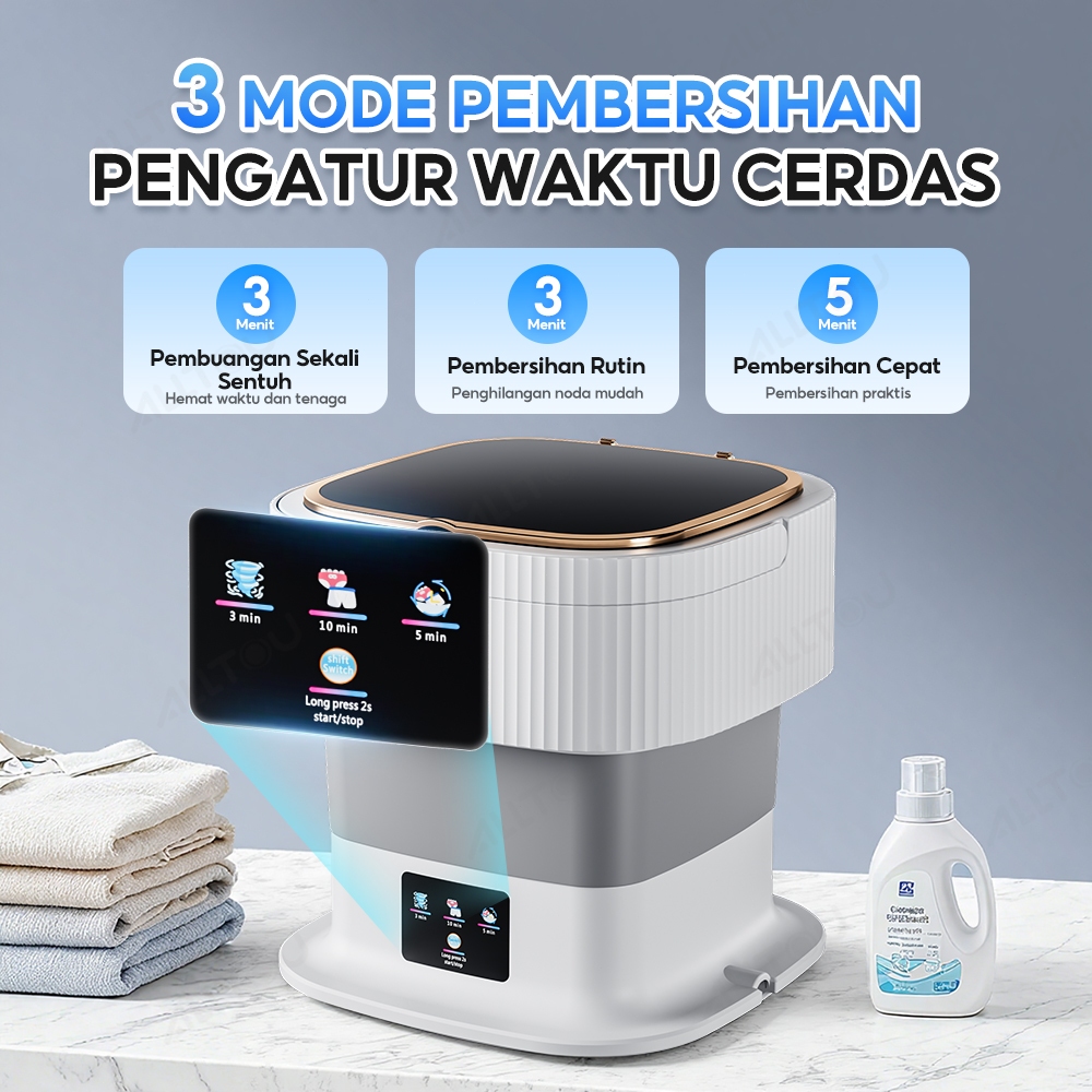 ALLTOU Mesin Cuci Mini Portable 13L Otomatis Mesin Pengering Pakaian Sterilisasi Cahaya Biru