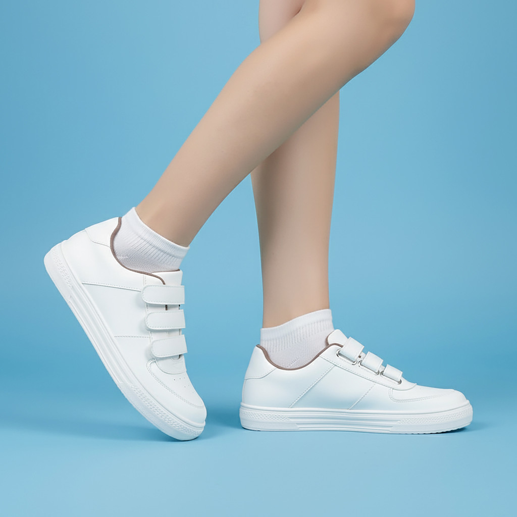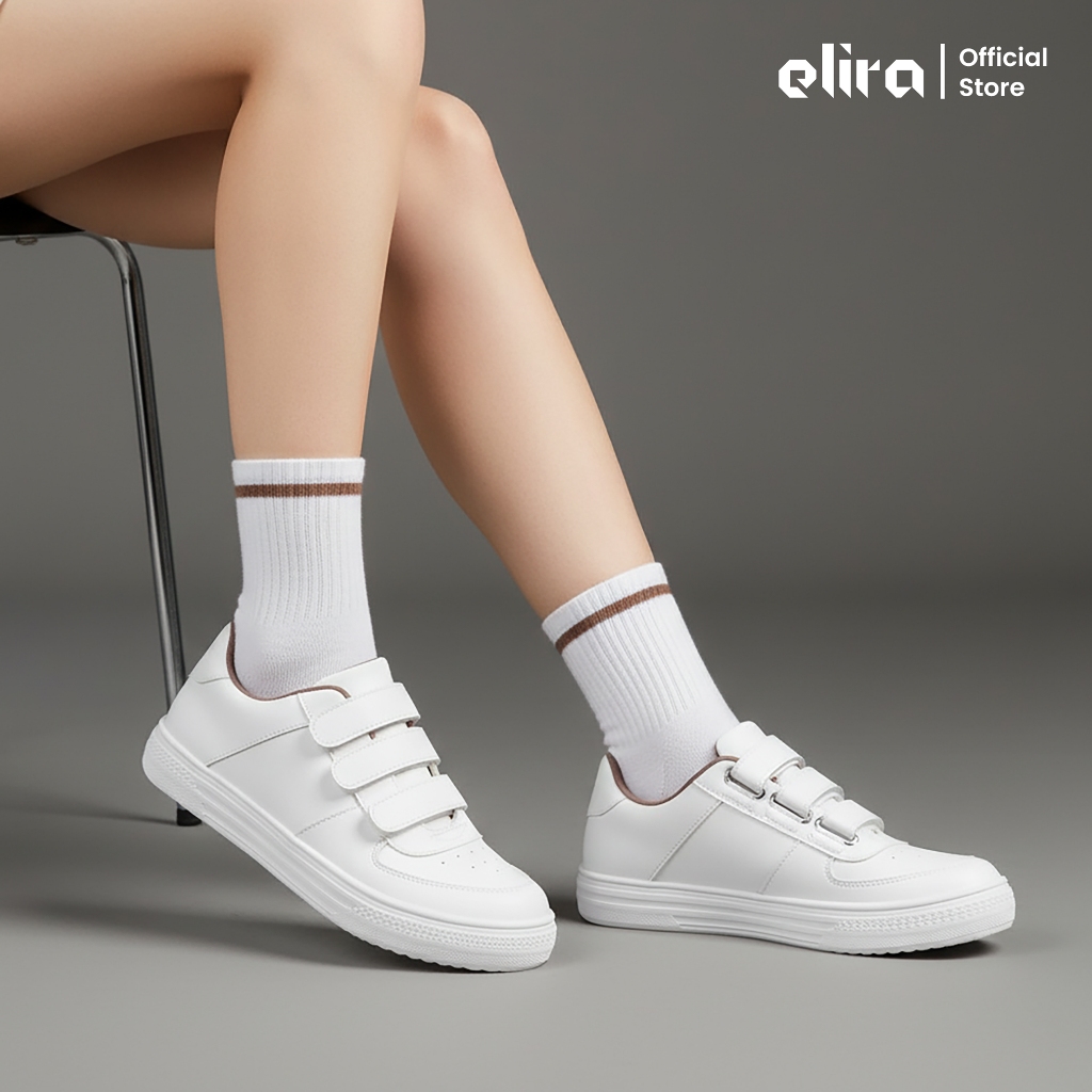 ELIRA Alice White Sepatu Perekat Sneakers Pink Strap Shoes Women