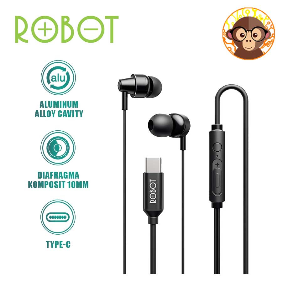 Earphone Robot REC240S Headset In Ear Wire Kabel Type C Original Ori 100 PERSEN