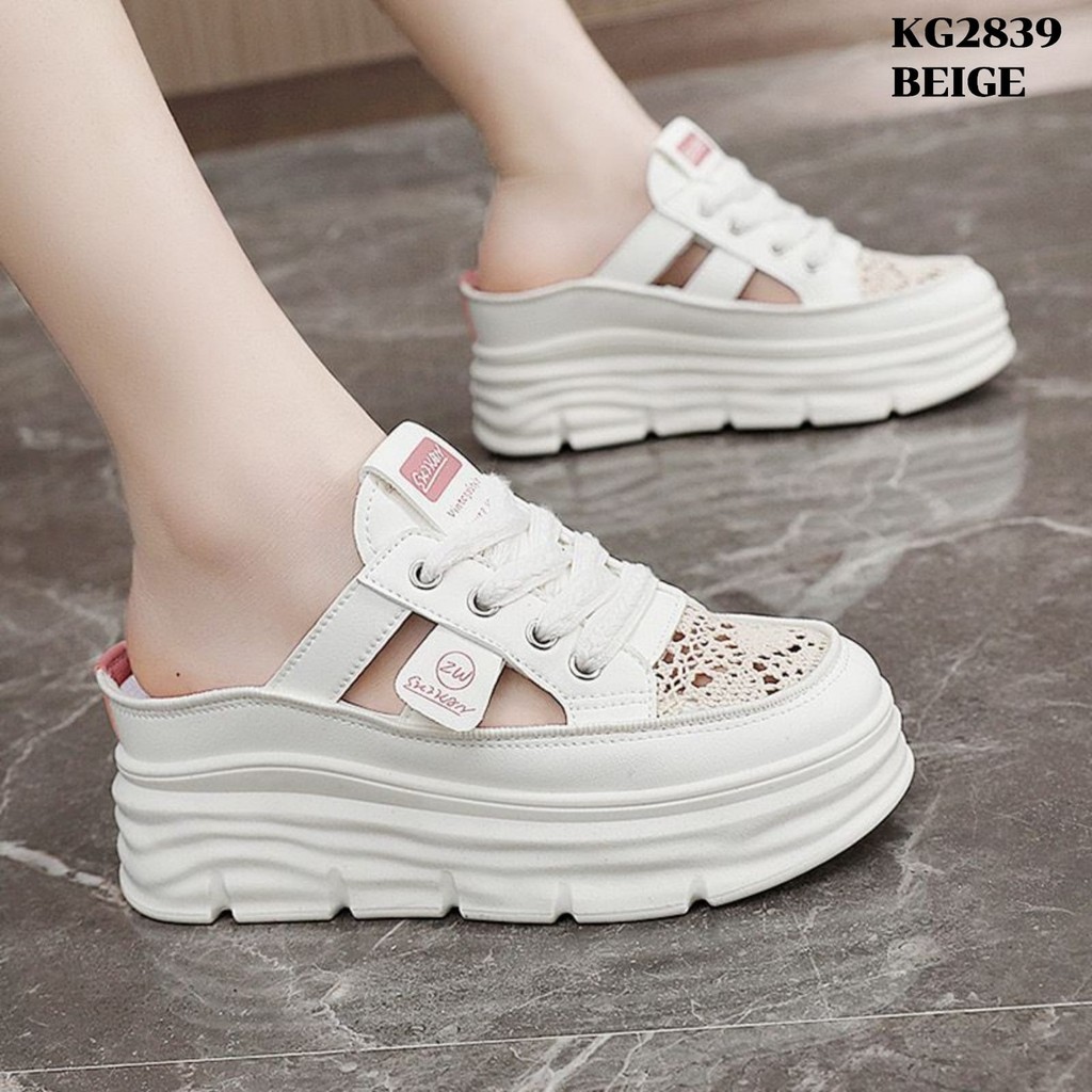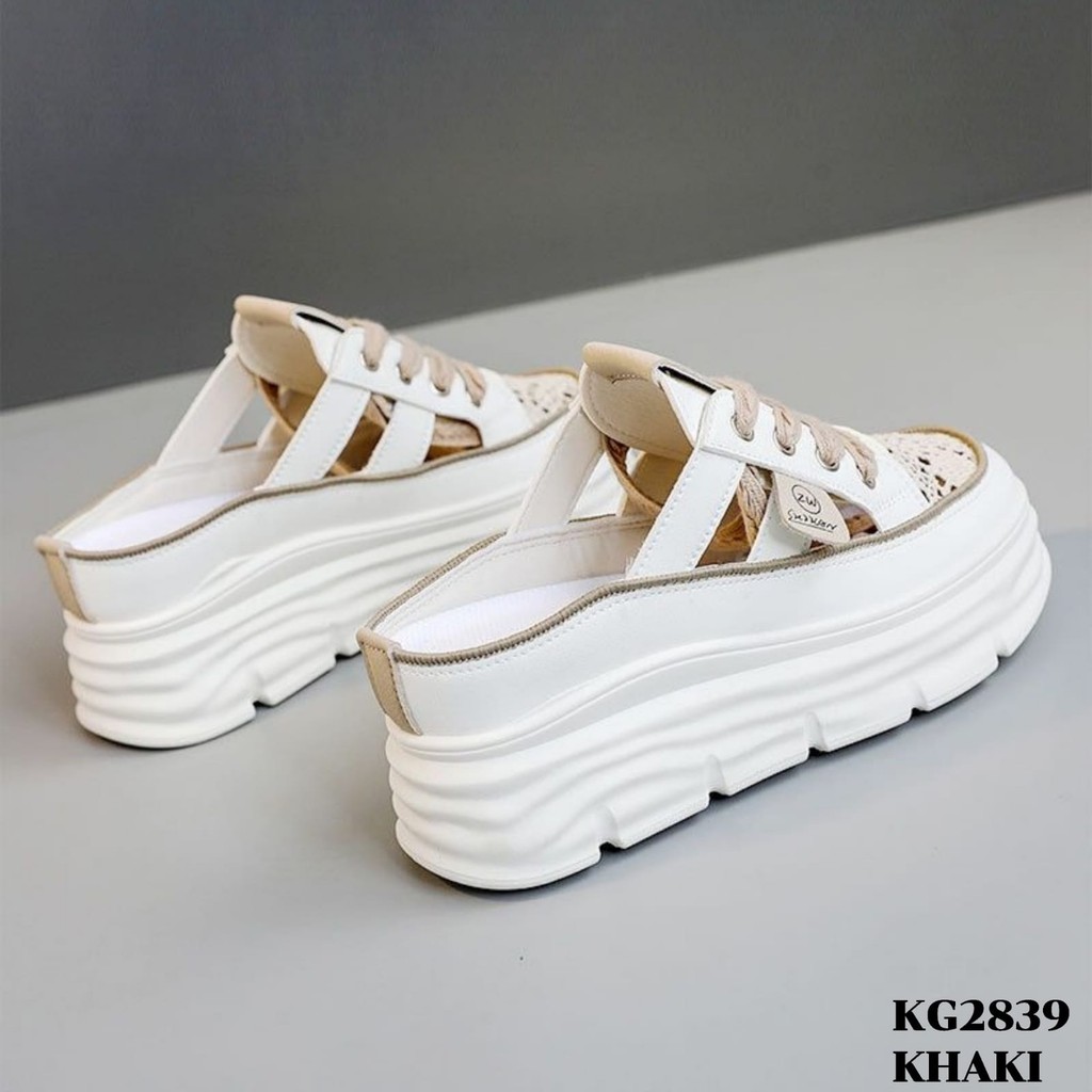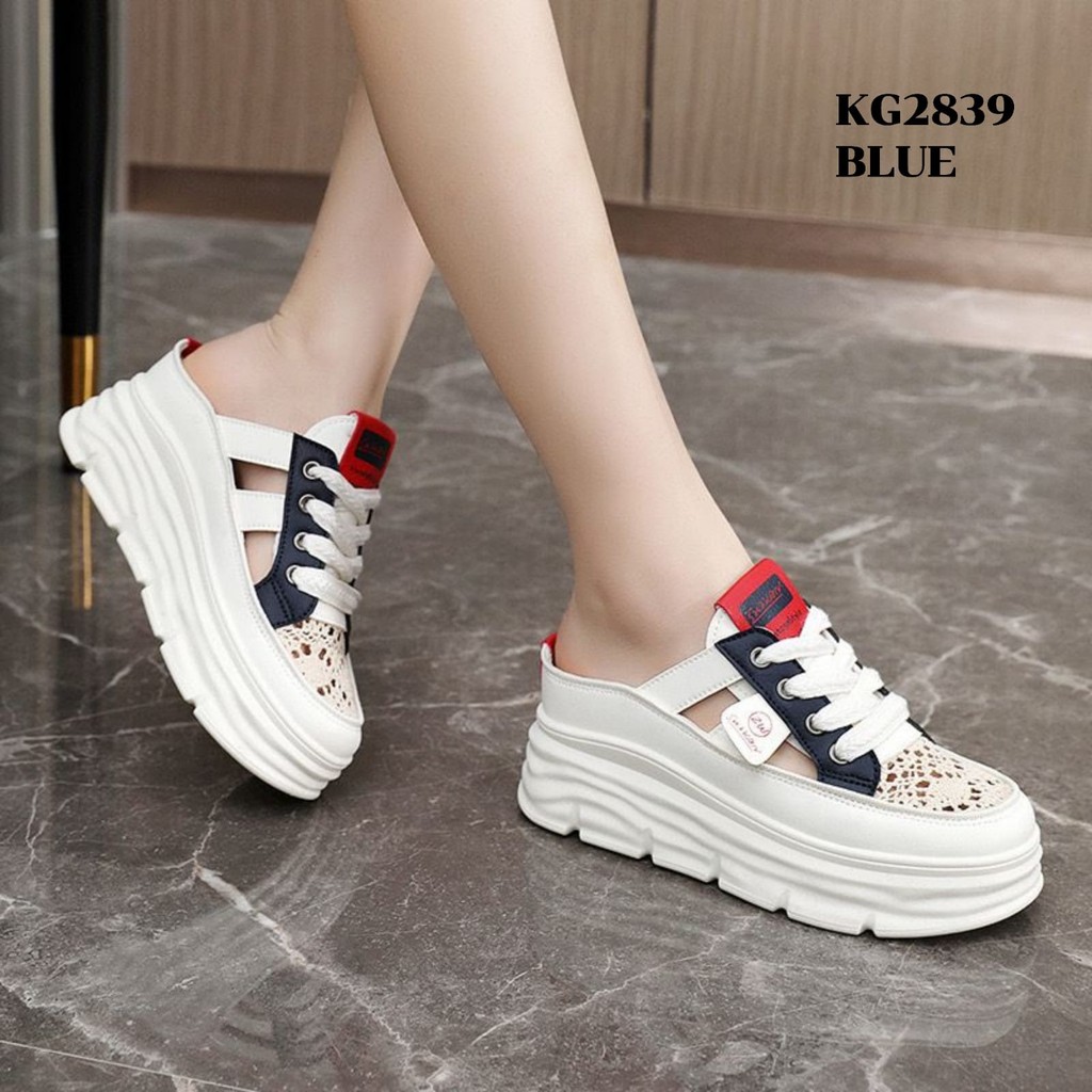 Sneakers Tinggi 6.5cm Beige Blue Khaki 3640 Wedges Slop Sepatu Wanita Fashion Korea KG2839
