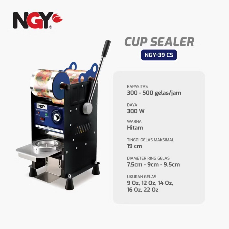 NAGOYA NGY-39CS CUP SEALER 22OZ GELAS PENDEK TINGGI JUMBO / MESIN PRES GELAS ES PLASTIK 22OZ GELAS PENDEK GELAS TINGGI SNI ORIGINAL BARU