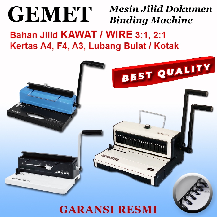 Mesin Jilid / Binding GEMET, Kawat Wire, Berbagai Pilihan Lengkap, Spiral Kawat 3:1 , 2:1, Kertas A4, F4, A3, Kualitas Terbaik Dan Termurah, GEMET