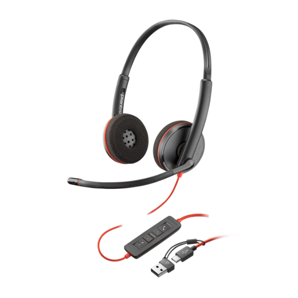 Poly / Plantronic Blackwire 3220 Stereo USB-C Headset +USB-C/A Adapter