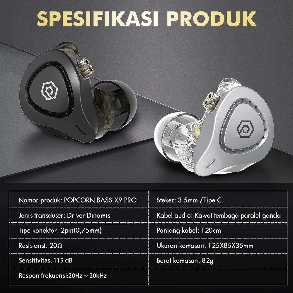 Popcorn BASS X9 Pro X8 Pro Dual Magnetic Dynamic Unit Ear Earphone HIFI DJ with Mic 3.5mm Earphone