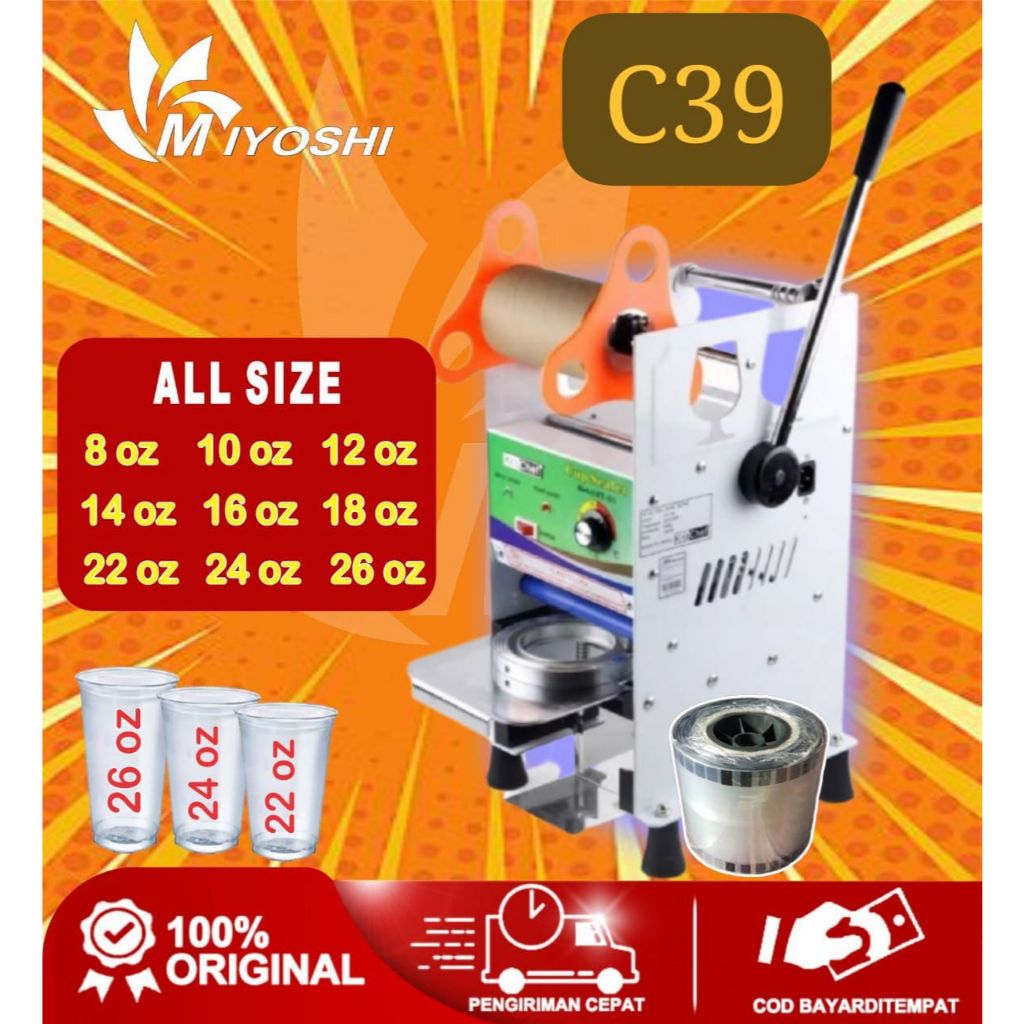 Mesin Cup Sealer Mesin Press Gelas C39 Miyoshi untuk Semua Ukuran Gelas 8 - 26 Oz