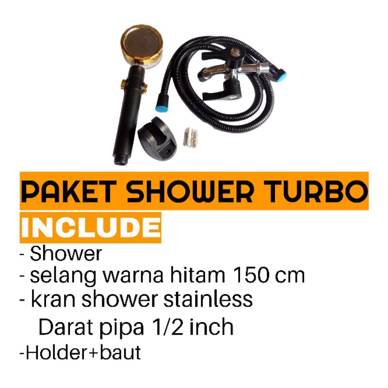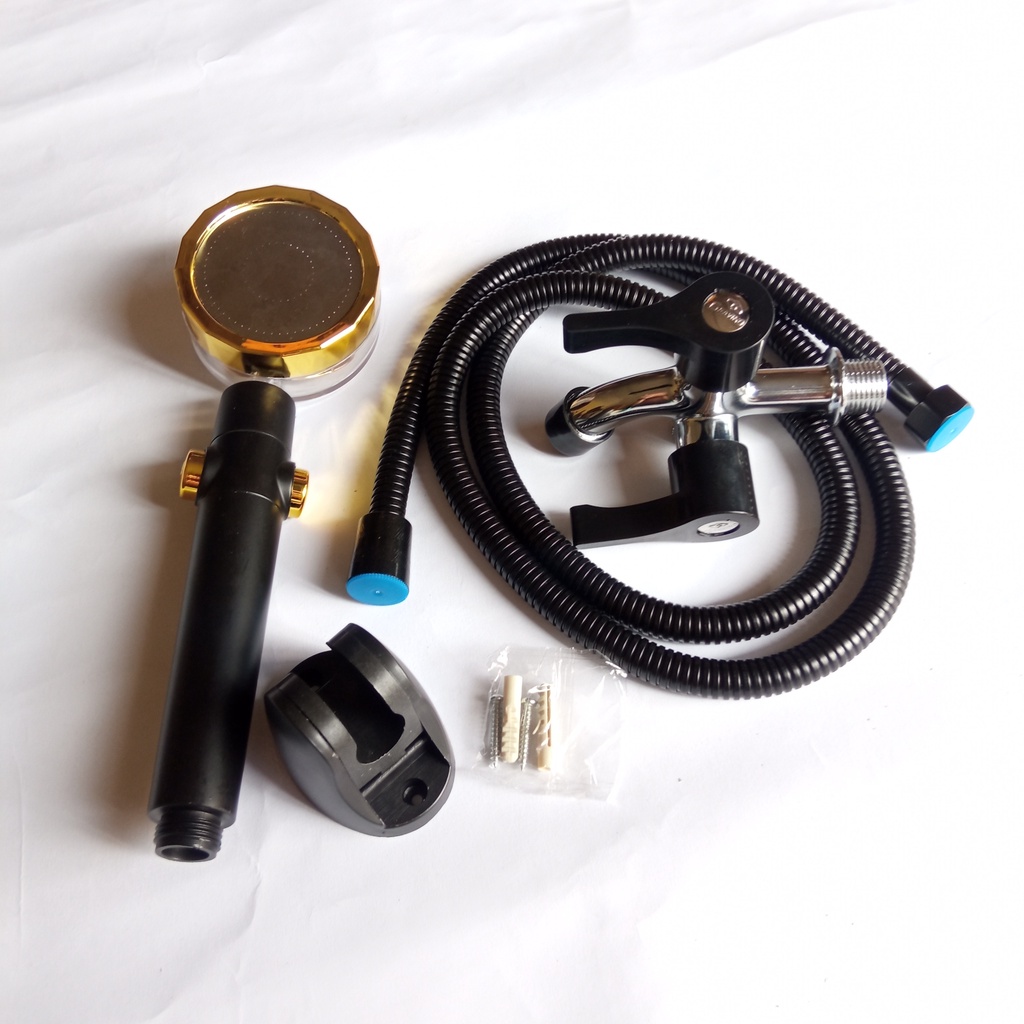 Turbo Fan Hitam Shower Head Water Saving High-Pressure Rainfall Propeller ABS Jet Shower Head 360 Rotation Toilet B