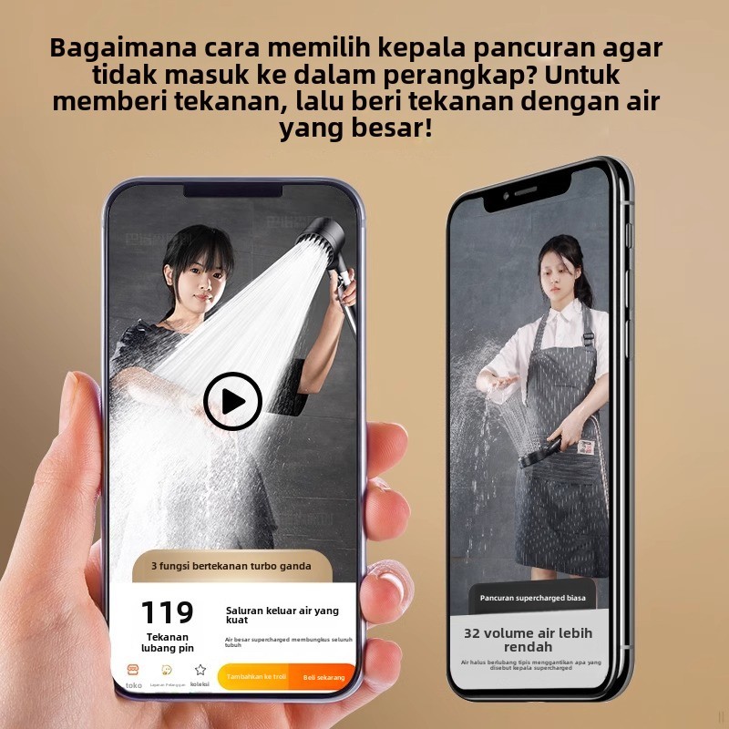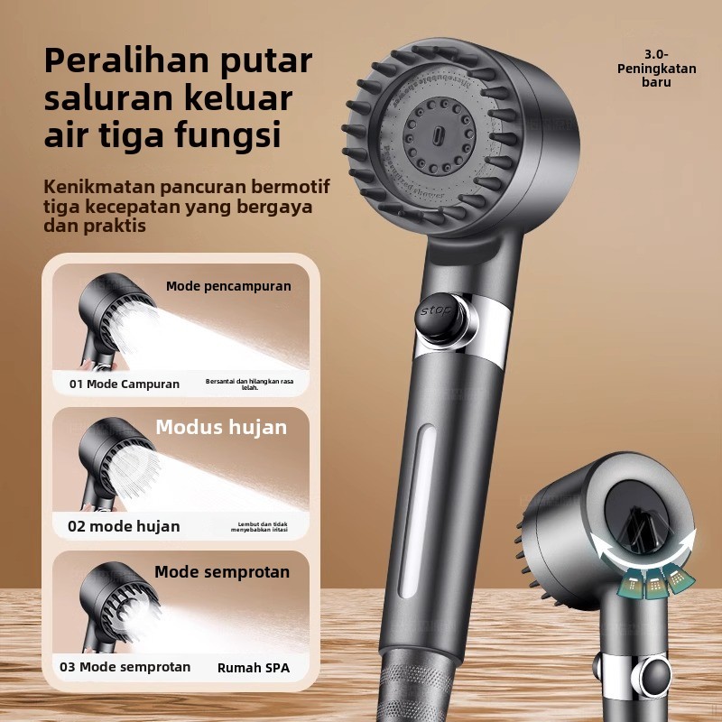 TSONG #001-A Kepala Shower 3 Mode Dan Saringan Bawaan Saringan Hand Shower Paket Handshower Kepala Shower Tekanan Tinggi