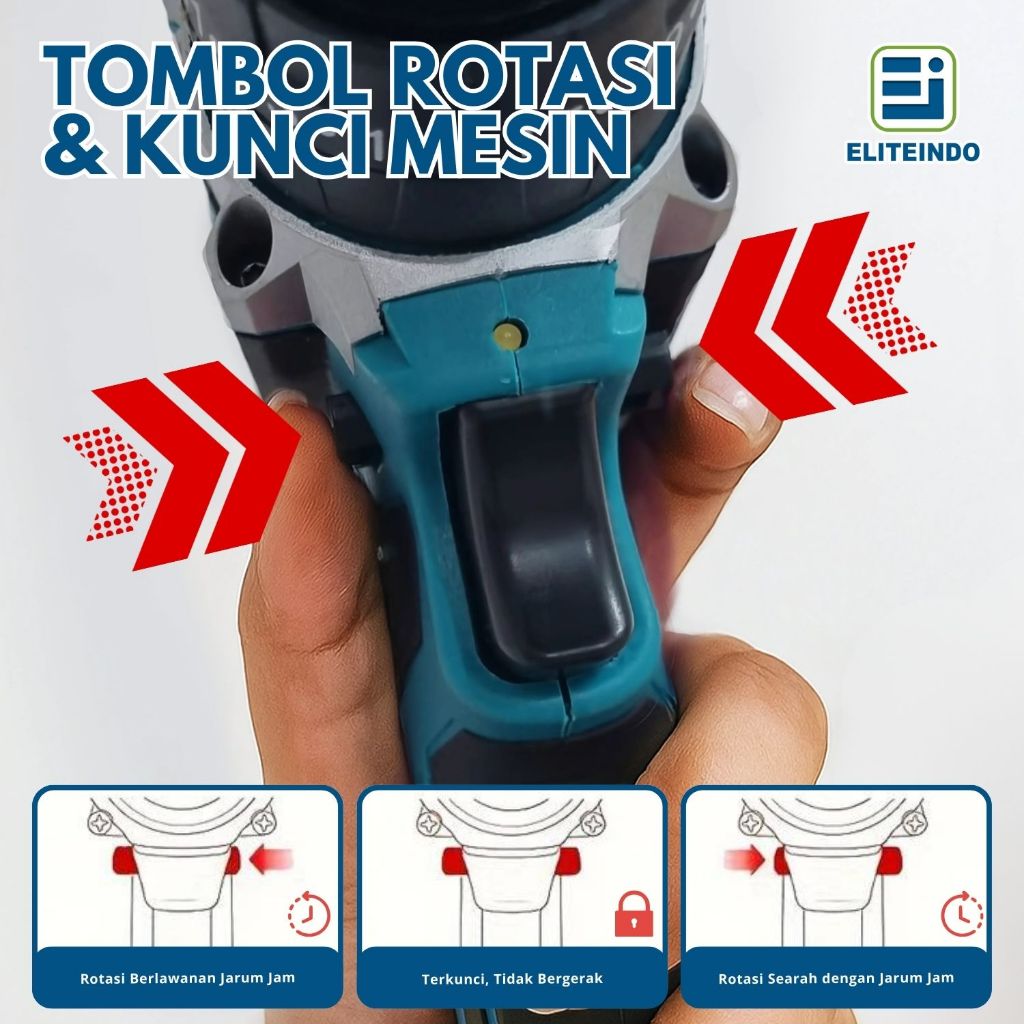 ELITE Set Mesin Bor 2 Baterai 50Pcs in 1 Toolkit Lengkap Perkakas Cordless Drill Impact Alat Listrik