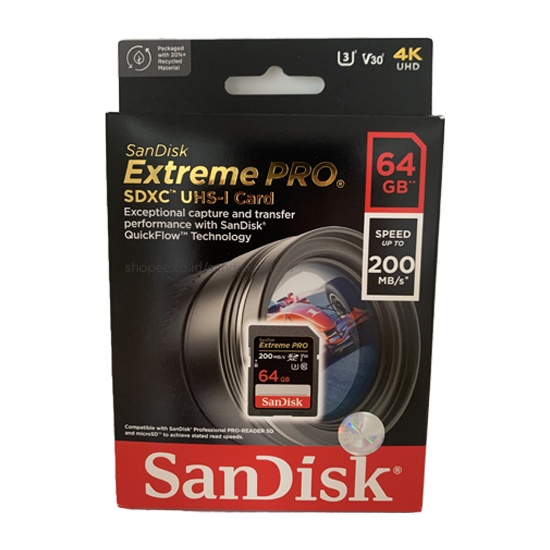 SanDisk SDXC Card Extreme Pro 64GB Class 10 U3 V30 for 4K UHD (Up to 200MB/s)