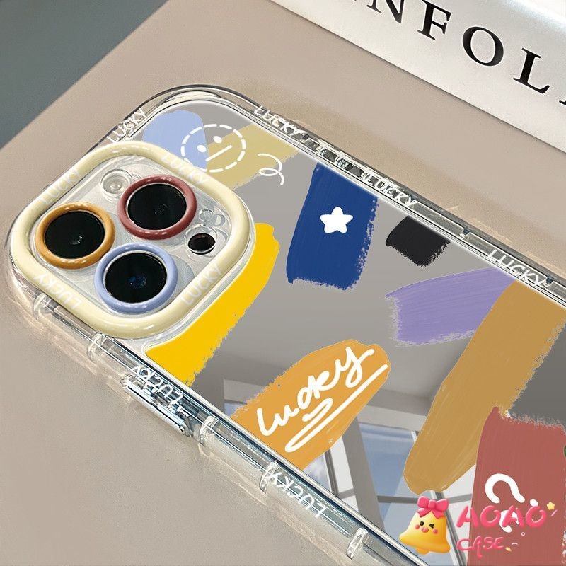 Case iPhone Soft TPU Mirror - Desain Huruf Lucky Fashion untuk iPhone 6/7/8/X/XR/11/12/13/14/15 Pro Max Plus