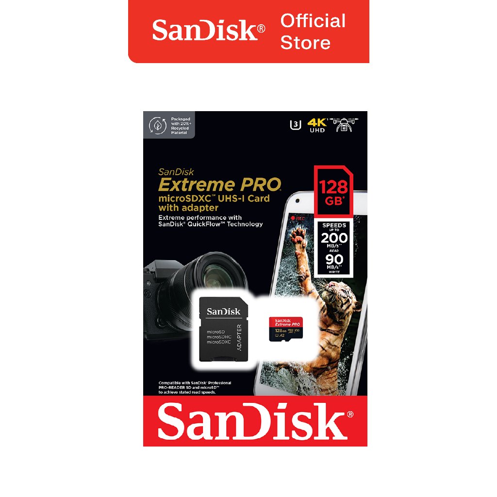 SanDisk microSDXC Extreme Pro 128GB Class 10 UHS-I A2 V30 U3 4K UHD Action Cam / Drone (Up to 200MB/s)