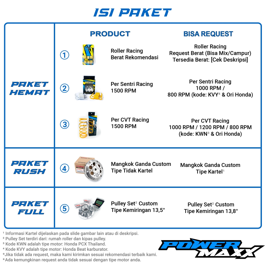 PAKET UPGRADE KIRIAN RACIKAN CVT FINO 115 125 karbu fi karburator injeksi paketan lengkap extra full set komplit hemat h