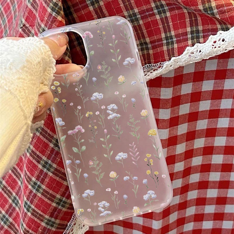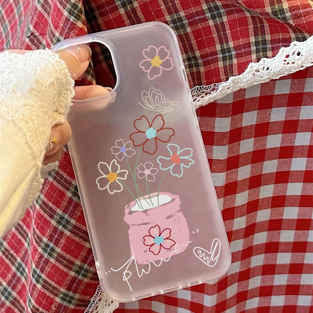 Soft Case Bunga iPhone 11-16 Pro Max Transparan Anti Jatuh