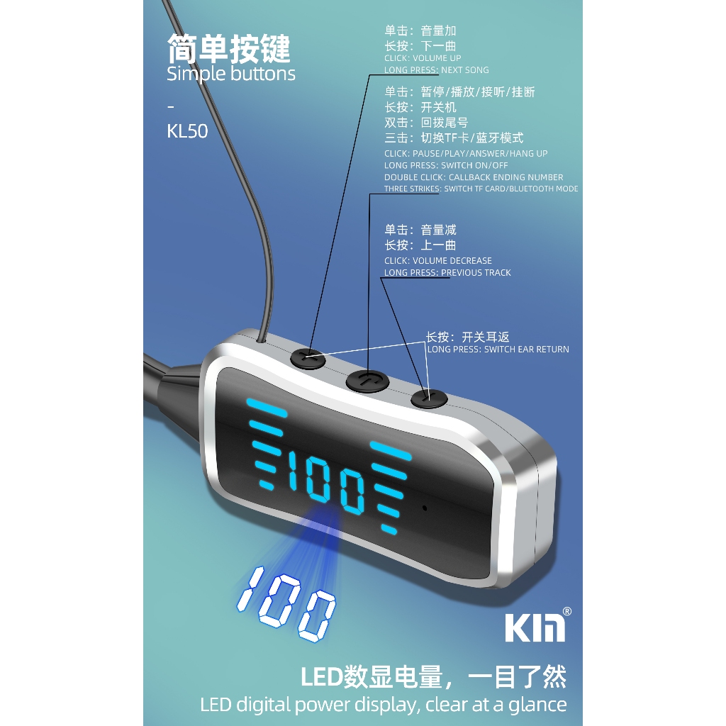 IZZY KL50 Sport Bluetooth 5.2 Earphone Wireless | Headset Neckband LED Display, Suara Jernih & Nyaman