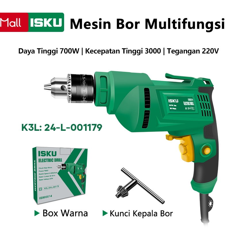 ISKU Mesin Bor Listrik Bolak Bali 700W 220V Hand Electric Drill Berlaku untuk 1.5-10mm Mata Bor/Mesin Bor