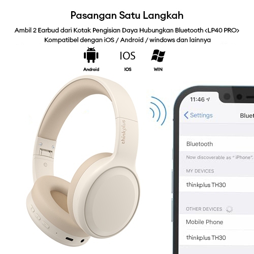 Lenovo Thinkplus TH30 Headset Bluetooth V5.3 Wireless Headphone Bluetooth Bass Gaming Music tws Headset for Android IOS PC