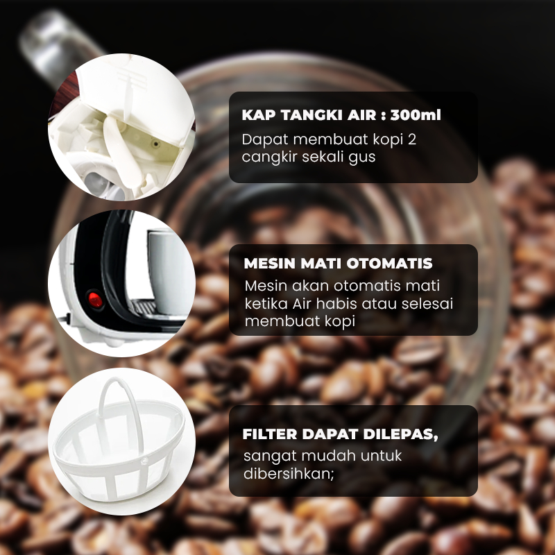 DoraHomi Coffee maker mesin pembuat kopi otomatis low watt 2 cangkir