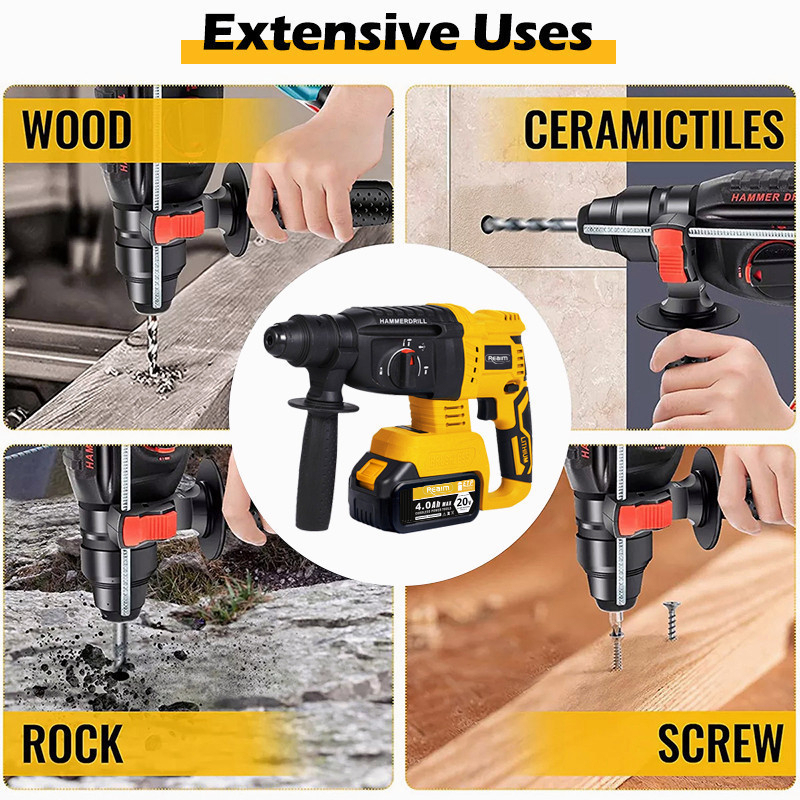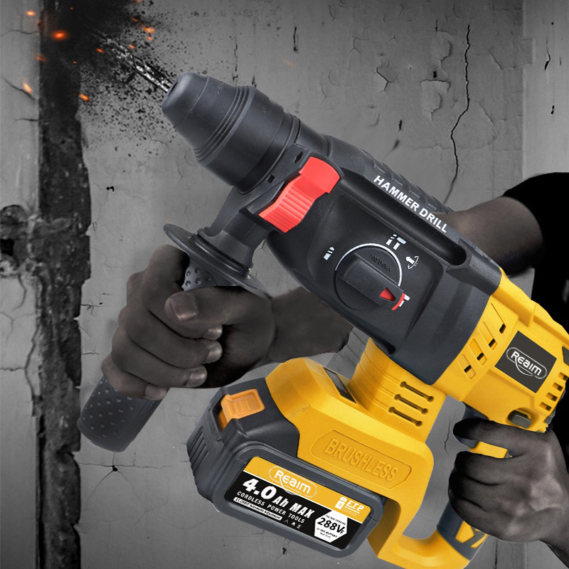REAIM 3 MODE Cordless Brushless Rotary Hammer Impact Drill Electric Rechargeable Portable Powertool Li-Ion Battery