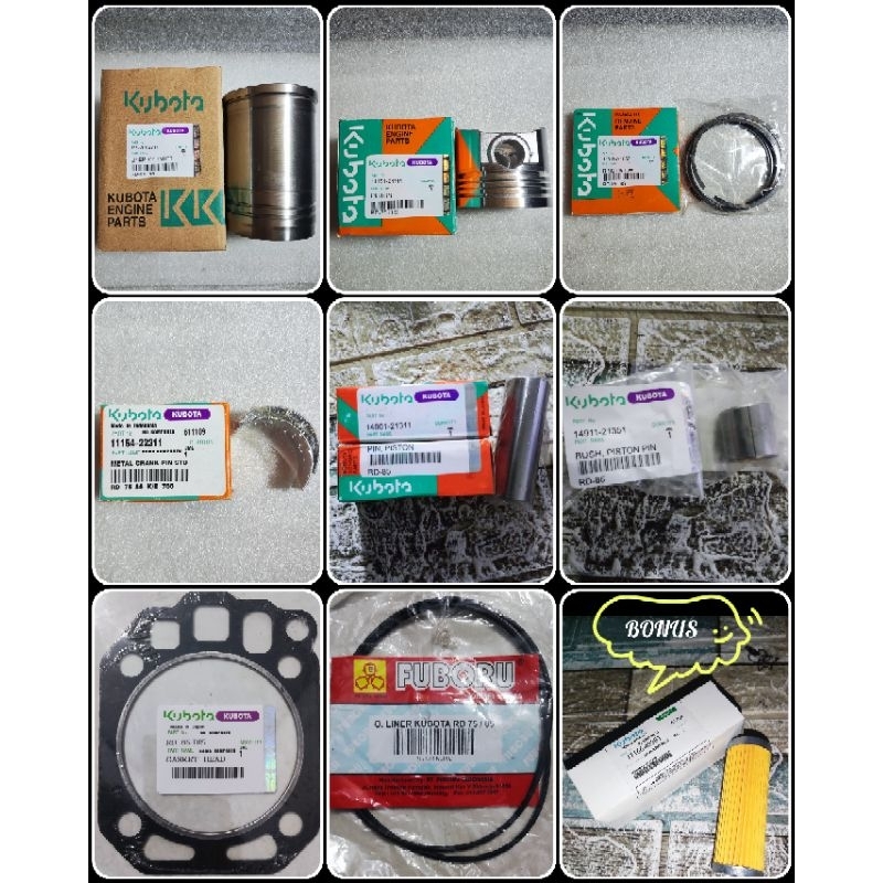 PAKET MESIN DIESEL KUBOTA RD 85 DI 1/2S CYLINDER LINER PISTON RING SET METAL PIN GASKET BUSH ORING (BONUS FILTER SOLAR)