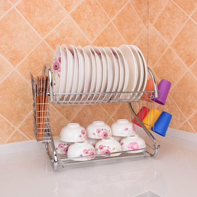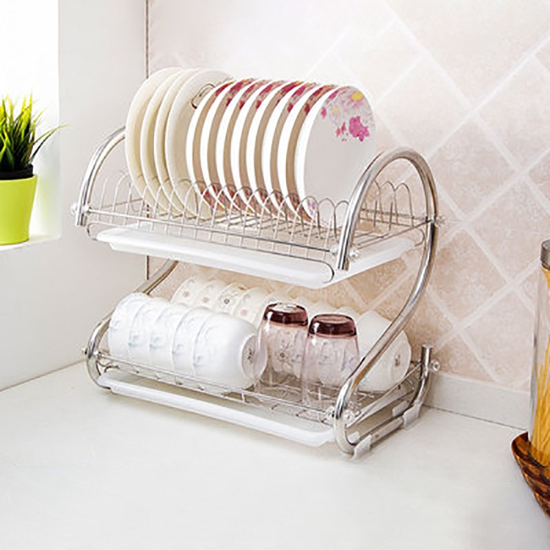 RLY5 Rak Piring Stainless Minimalis Rak 2 Susun Tingkat Rak piring serbaguna Rak piring mini