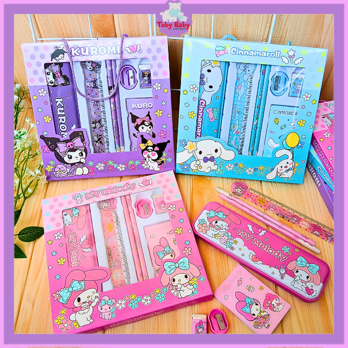 Set Alat Tulis Anak 7 in 1 Motif Sanrio Lucu Suvenir Kado Perlengkapan Sekolah Stationary Set