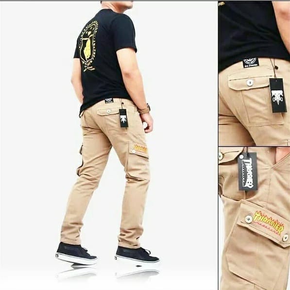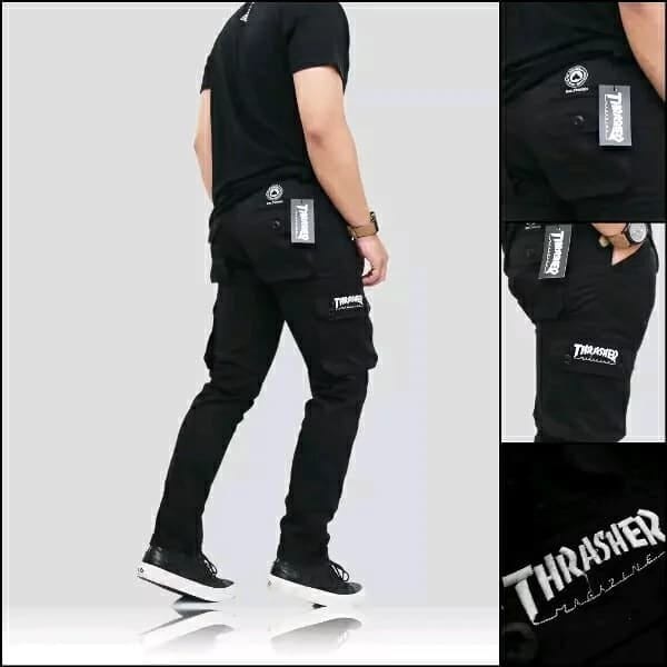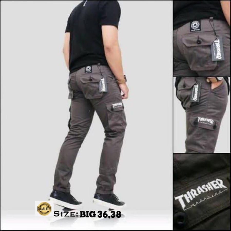 Celana Cargo Panjang Thrasher Bahan Katun Drill Tebal Nyaman Dipakai Size 28-38 Trendy