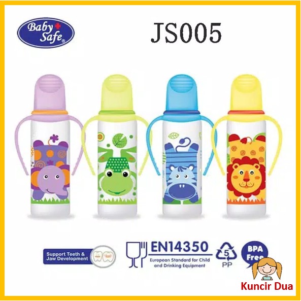 Botol Susu Baby Safe 125 ml 250 ml / Botol Dot Baby Safe JS003 JS004 JS005 Dengan Pegangan