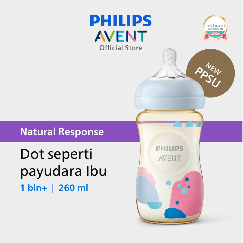Philips Avent | Botol Susu Bayi | PPSU Natural Response | Dot Seperti Payudara Ibu & Tahan Hingga 180 C | 260 ml | Singl