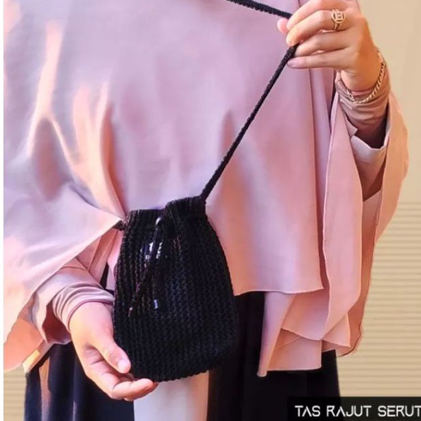 baru Tas selempang Rajut Serut Mini Polos /Sling bag mini / Tas Hp elegant