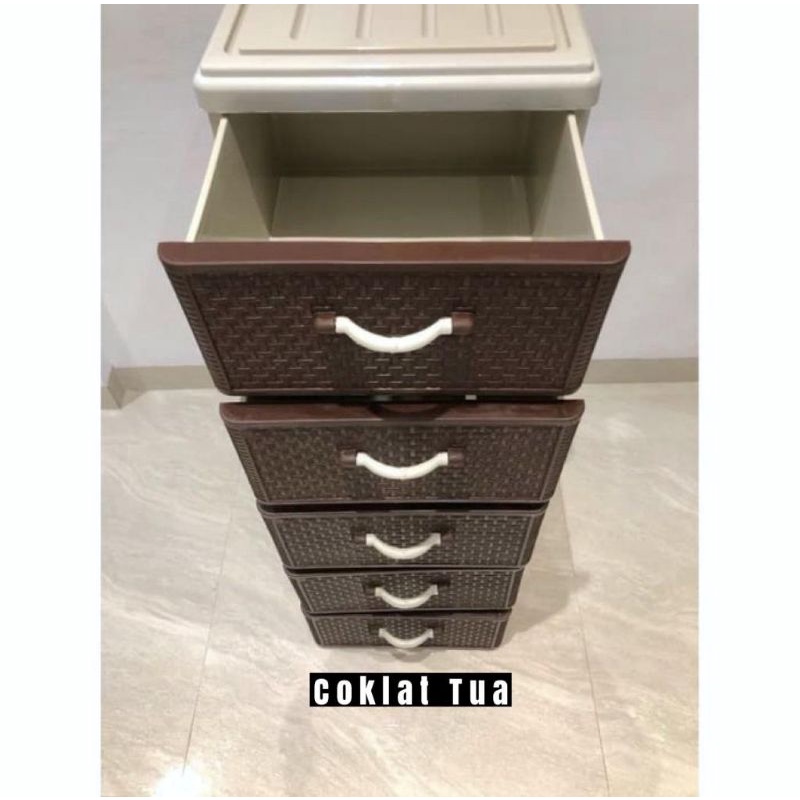 GRATIS ONGKIR Lemari Laci 5 Rak Plastik Laci Plastik Lemari Plastik Motif Rotan Susun 5
