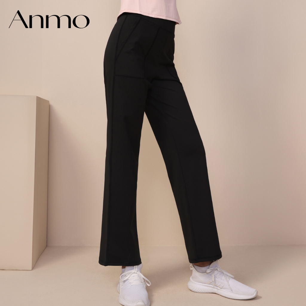 ANMO-Celana kasual high-waist, celana olahraga, celana cutbray santai, celana longgar model lurus