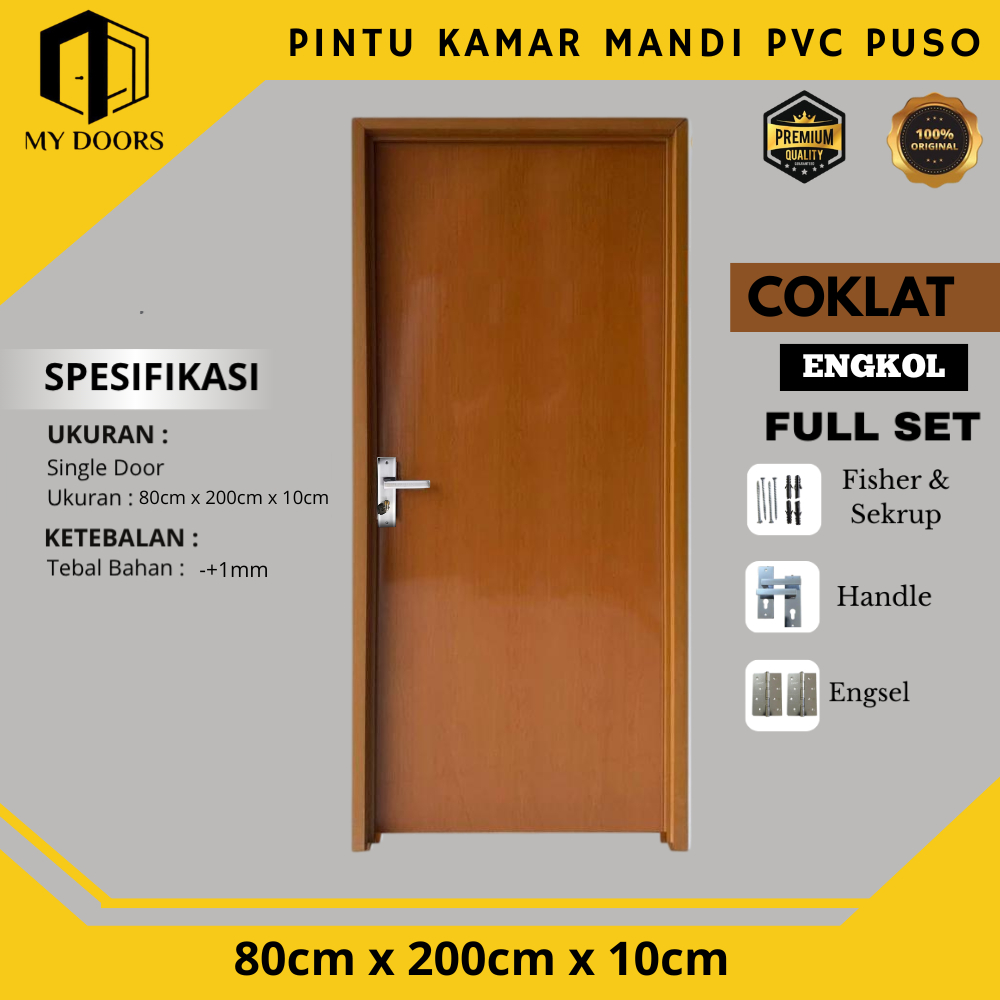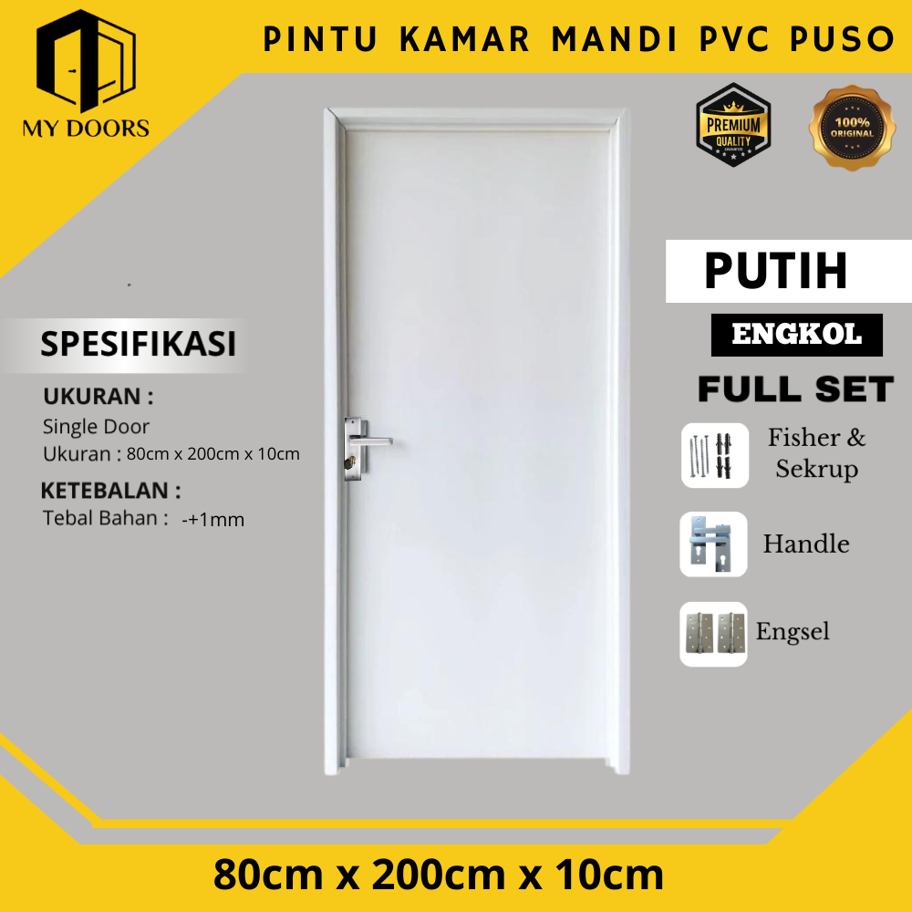 Pintu Kamar Mandi - Pintu Kamar PVC Bahan Tebal 80 x 200 Polos Glosy Anti Rayap