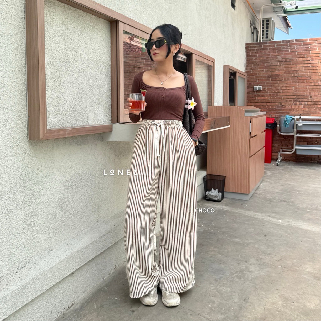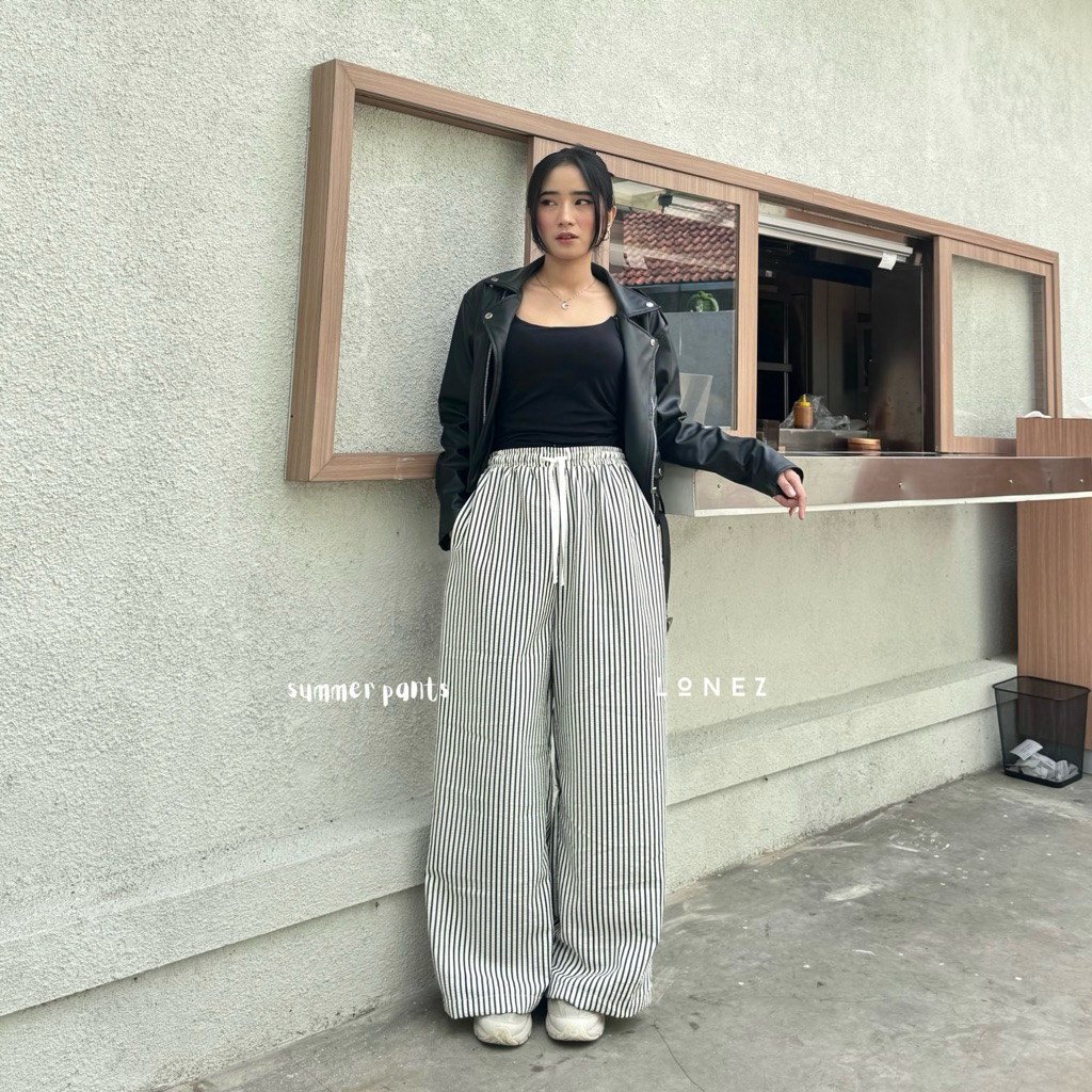 Summer Pants by LONEZ | Stripe Pants | Celana Salur | Wide Loose Pants