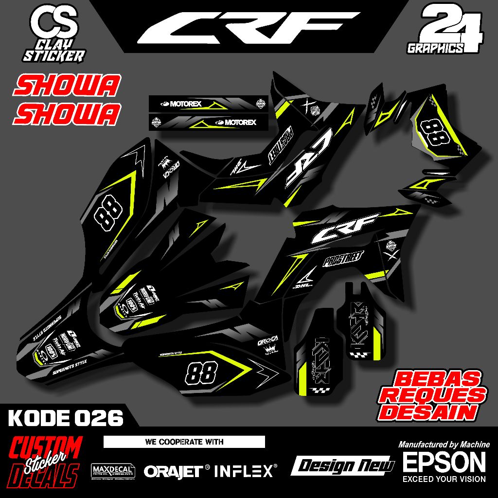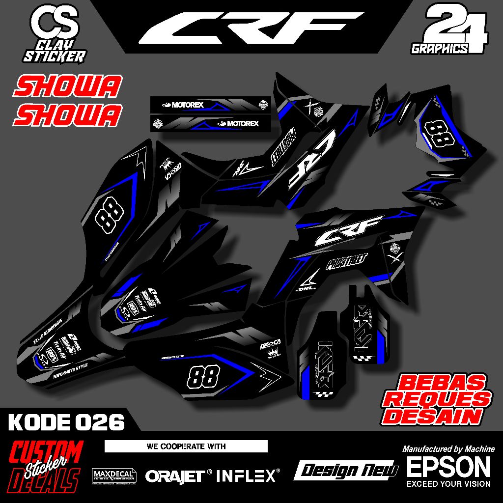 Decal Stiker Motor CRF 150L Fullset – Bisa Ubah Nama, Nomor, Sponsor – Kualitas Premium Kode 026