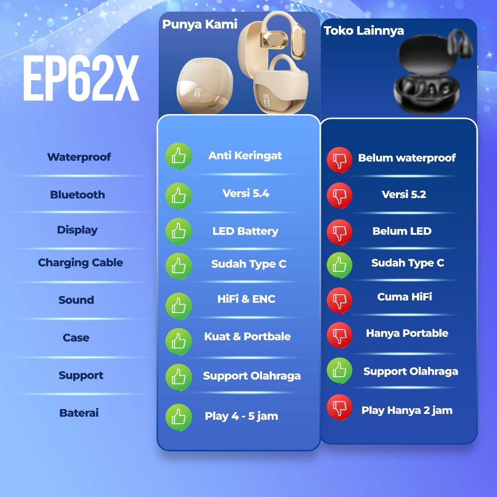 Jovitech OWS Open Ear Headset Bluetooth Earhook tws 5.4 ENC Peredam Kebisingan Suara HiFi Stereo True Wireless Sport Earphone Waterproof