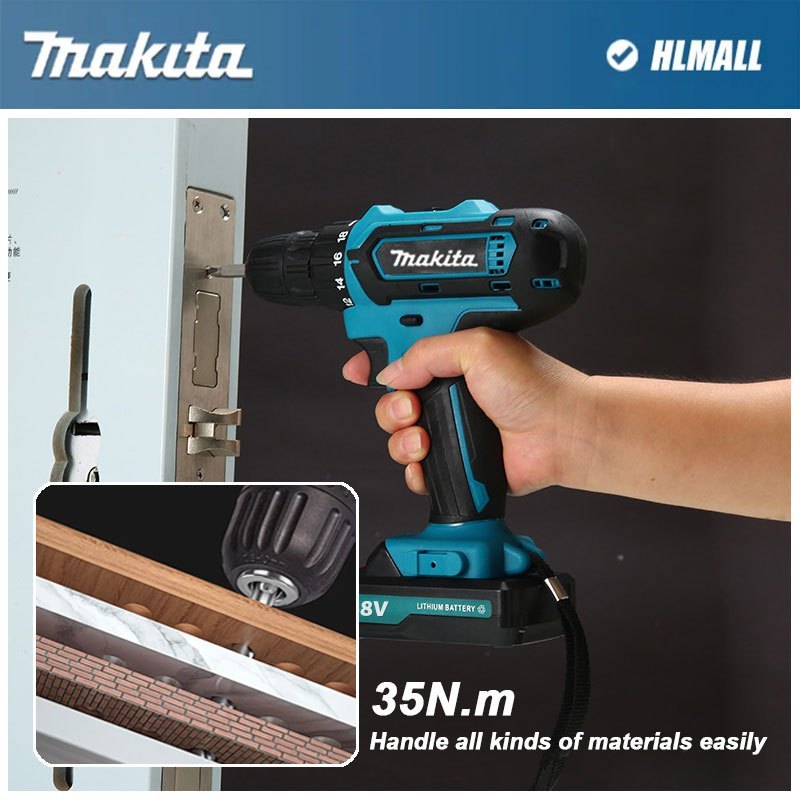 MAKlTA 96V Mesin bor 2baterai cas 10mm bor listrik murah bor tangan baterai besi tembok Beton kayu Cordless Drill bor cas