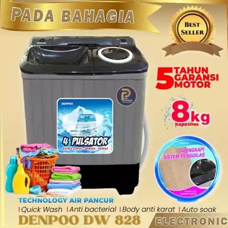 MESIN CUCI 2 TABUNG 8 KG DENPOO DW 8907B 4P TURBO PULSATOR