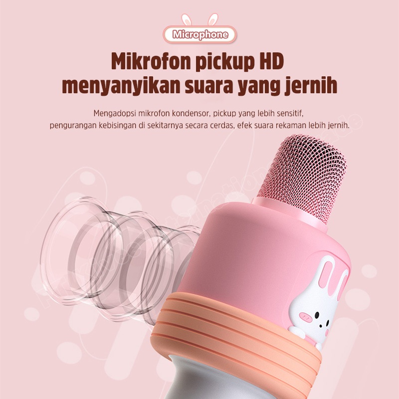 ASTON Mic Wireless Bluetooth 5.3 AT-US50 Microphone Anak Pink Cute Kartun Macaron For Family Karaoke