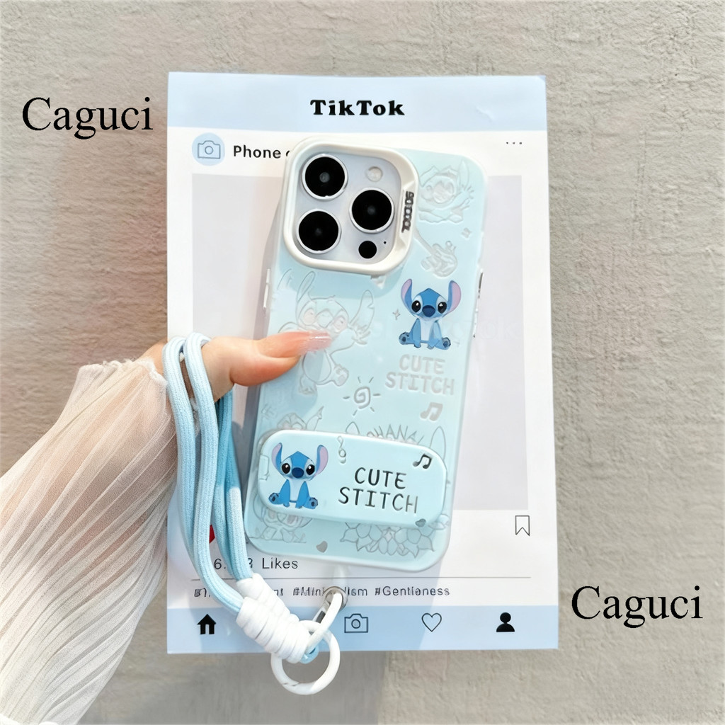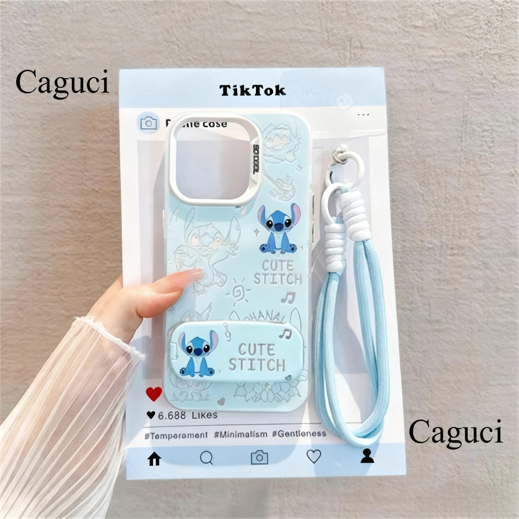 Casing iPhone Kartun Lucu Mirror Stand - Stitch Anti Jatuh Untuk iPhone 16/15/14/13/12/11 Pro Max