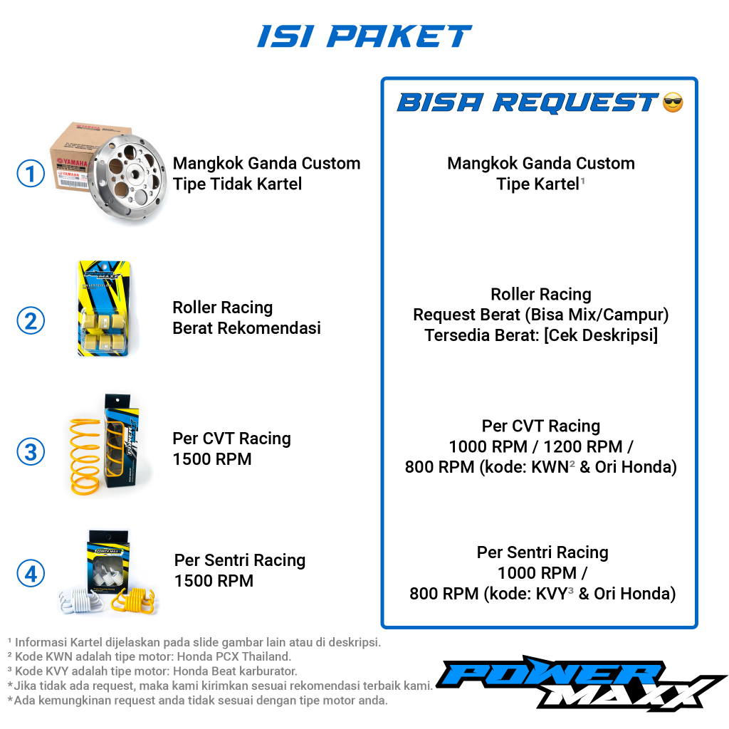 PAKET SEMI UPGRADE KIRIAN CVT soul gt x ride fino xeon fazzio freego nouvo xride x-ride 115 125 karburator karbu fi raci
