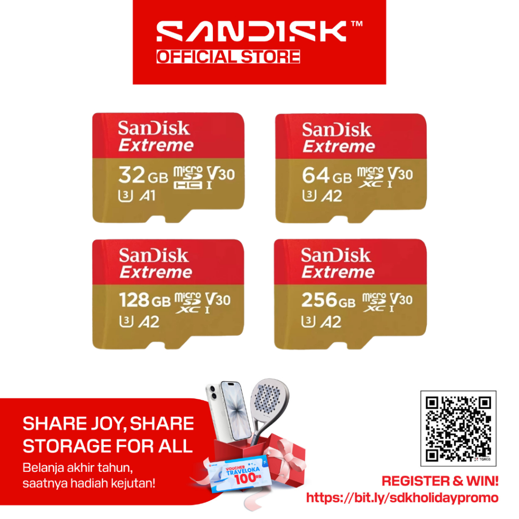 SanDisk microSDHC / microSDXC Extreme Card 32GB/64GB/128GB/256GB UHS-I U3 Class 10