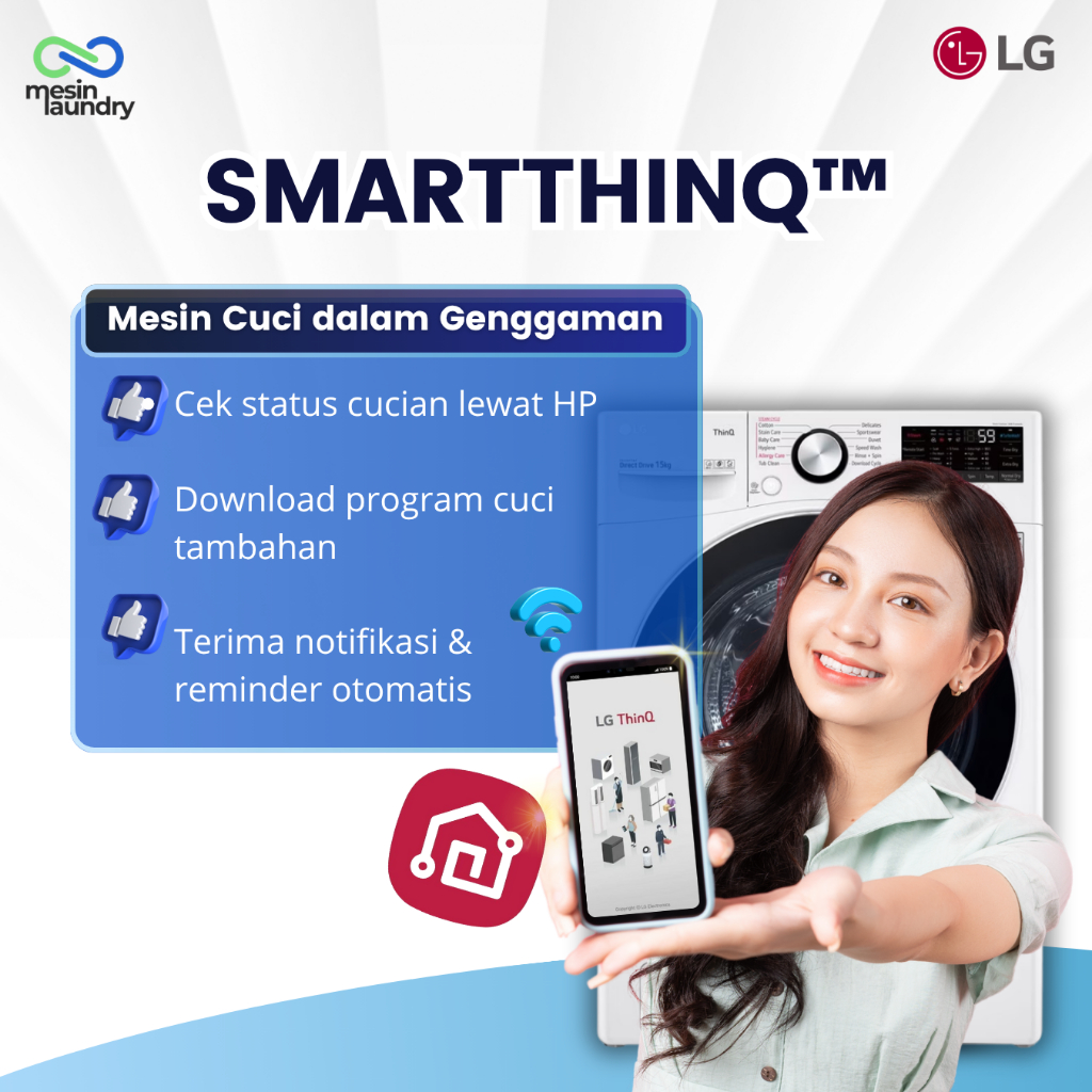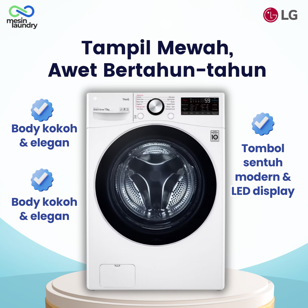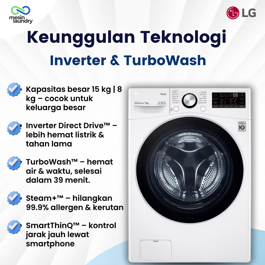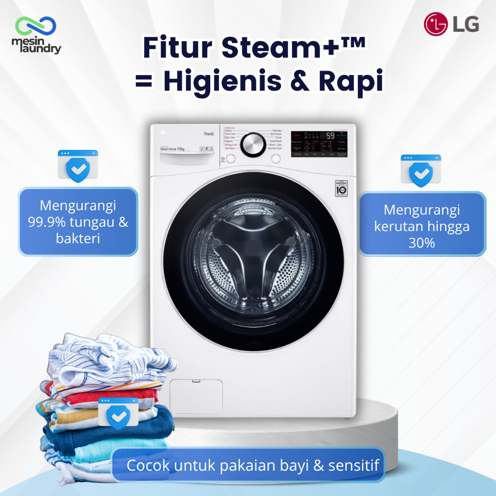 LG F2515SNEW1 Mesin Cuci Front Load 15kg Inverter Direct Drive | TurboWash™ Steam+™ SmartThinQ™