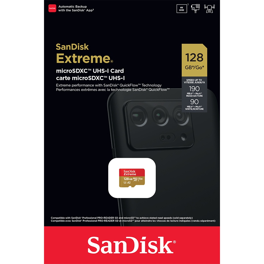 SanDisk microSDXC Extreme 128GB Class 10 UHS-I A2 V30 U3 4K UHD Drone (Up to 190MB/s)