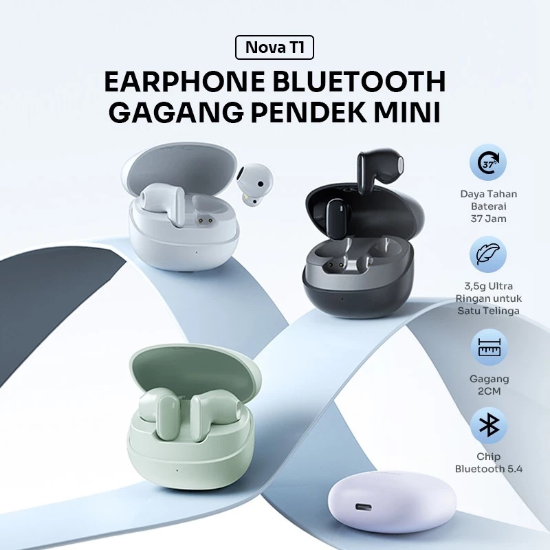 Robot TWS Nova T1 Headset Bluetooth 5.4 Earphone Wireless with Gagang Mini 2 Cm Garansi Resmi