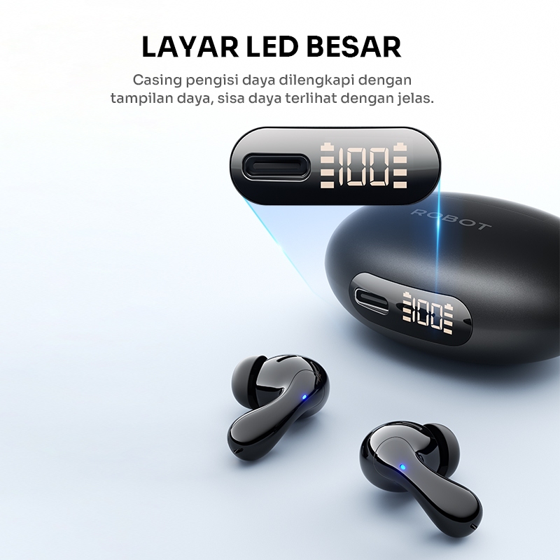 ROBOT Earphone Wireless Bluetooth 6.0 Suara Jernih Powerful Bass Pemakaian 37 Jam dengan Tampilan Daya LED TWS Nova T3 - Garansi 1 Tahun