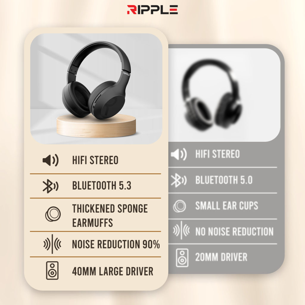 Ripple Headphone Bluetooth Noise Cancelling Wireless Earphone Bluetooth 5.3 HiFi Quality Sound A007