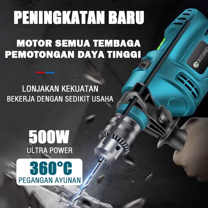 ECOSEN 13mm Bor Listrik Murah 500W Mesin Bor Bolak Balik Untuk Bor Tembok Kayu dan Besi Tembok Bor Listrik Impact Impact Drill Listrik